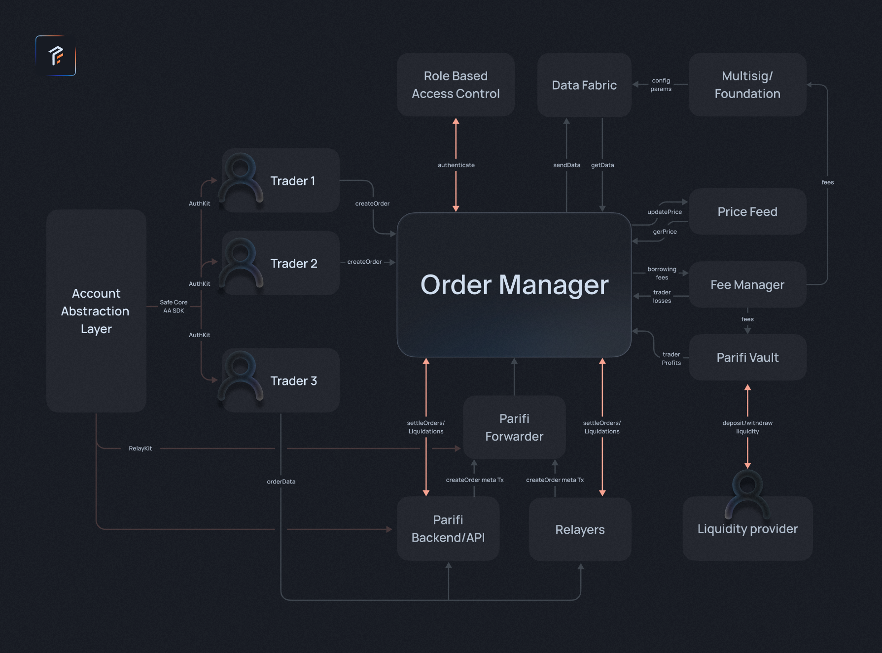 <figure><img src="https://2423442521-files.gitbook.io/~/files/v0/b/gitbook-x-prod.appspot.com/o/spaces%2FoUYAFSzepWGk8zqiRxhn%2Fuploads%2Fi7zgTvmjRiLF0hfIGZDO%2FTechnicalities%20Article_How%20it%20Works.png?alt=media&#x26;token=21812a44-62c0-4512-a11e-28ce47591e07" alt=""><figcaption><p>Parifi's Architecture</p></figcaption></figure>